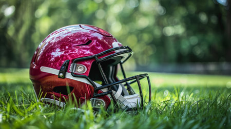 Helmet for american football on green grass