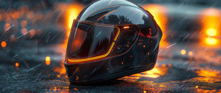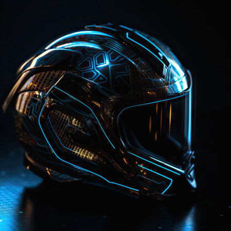 Racing helmet with neon lights and motion blur, futuristic concept