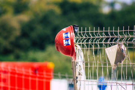 Colourful Variety of Used Helmets Protective Equipment