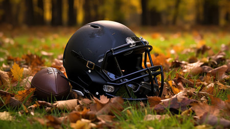 contrast black football helmet illustration vibrant photo, showcase autumn, sports gear contrast black football helmet