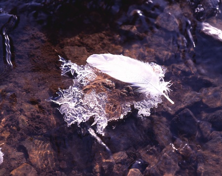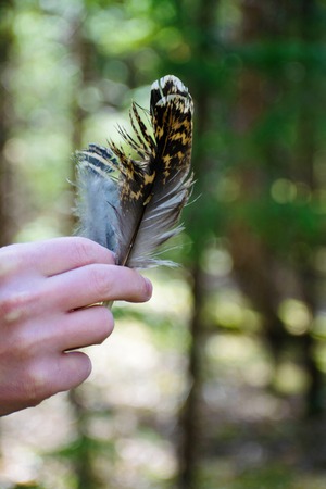 Floating tuft of feathers elegantly isolated in shallow depth of field photograph