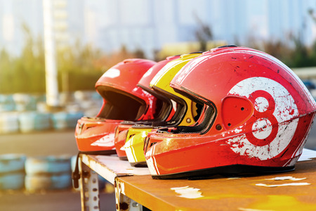 group of helmet for karting in race