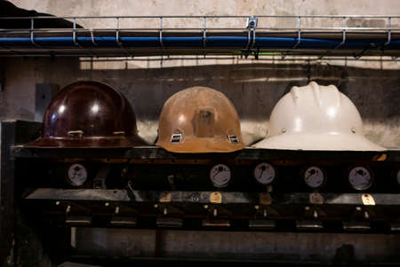 Historical mine helmets in the Cogne mine
