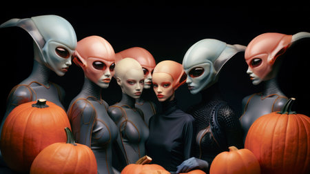 A group of aliens celebrating Halloween, AI-generated.