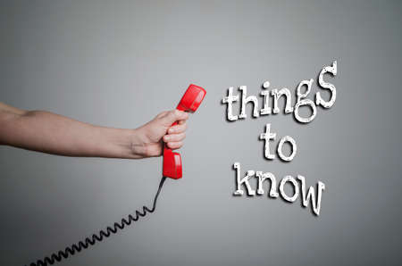 Hand with red old fashioned style telephone handset receiver