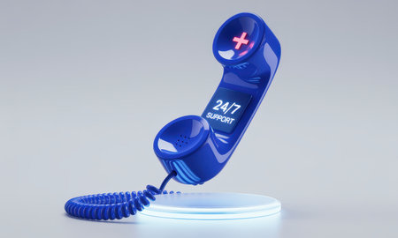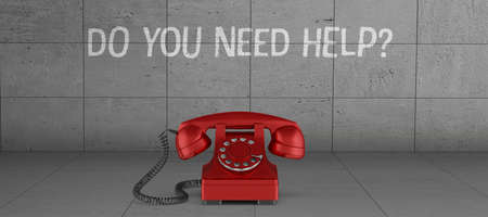 the word help made with toy bricks and a phone in background telephone receiver in the foreground
