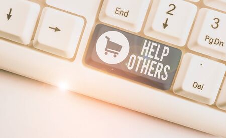 Writing note showing Help Others. Business concept for the action of helping someone to do something or assistance White pc keyboard with note paper above the white background