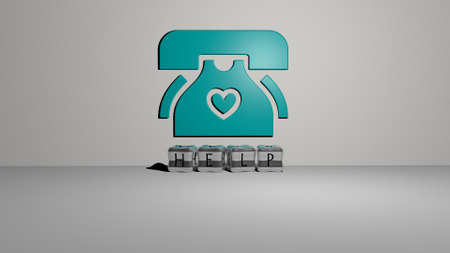 3D illustration of help graphics and text made by metallic dice letters for the related meanings of the concept and presentations. background and care