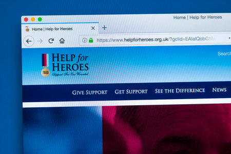 LONDON, UK - JANUARY 4TH 2018: The homepage of the official website for Help For Heroes - the charity launched to help provide better facilities for british servicemen and women who have been wounded in the line of duty, on 4th January 2018.