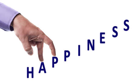 Male fingers climb happiness word