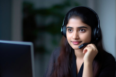 Wireless Headset-Wearing Indian Woman Embracing the Future of Education. Generative AI