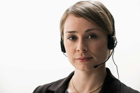 Female customer support operator with headset and smiling