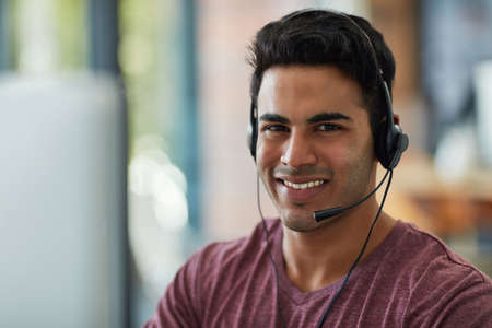 He upholds the trust and faith in his company. Shot of a young call centre agent working at his desk.