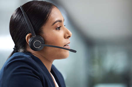 An attentive ear can get you through anything. Shot of an unrecognizable woman using a headset in a modern office.