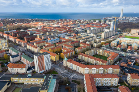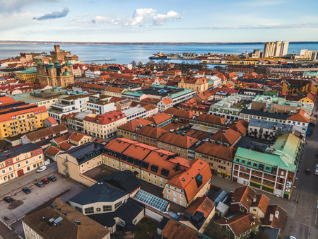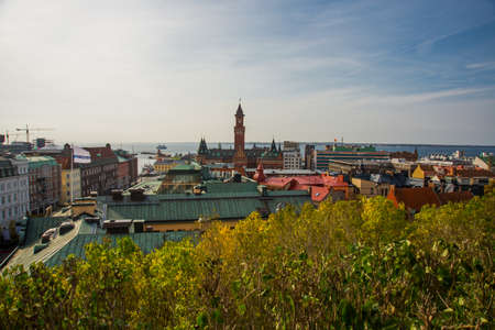 HELSINGBORG, SWEDEN - OCTOBER 06, 2020: An elevated view of the city of showing some of the different architectural details and styles.