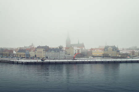 An elevated view of the swedish city of Helsingborg during some wintry weather conditions.