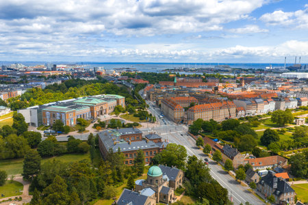 Aerial View of Copenhagen City Center with Coastline and Power Plant