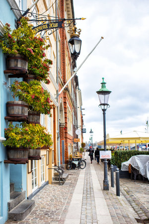 Copenhagen, Denmark- May 6, 2018: Copenghagen street with trditional colorful houses
