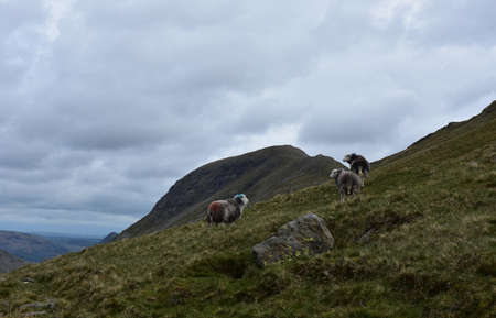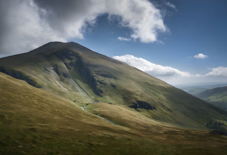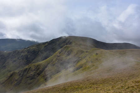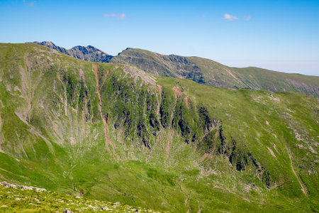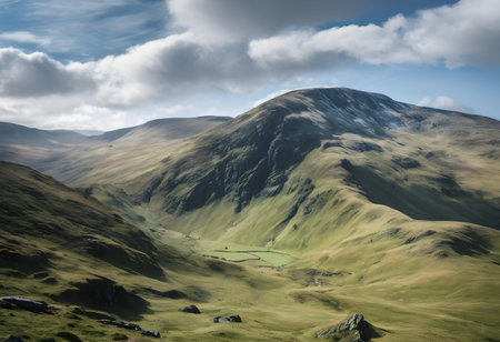 Panoramic Mountain valley landscape in Fairfiled Horseshoe, Lake District, Cumbria, Great Britain
