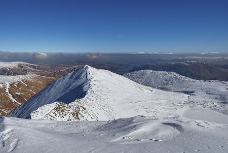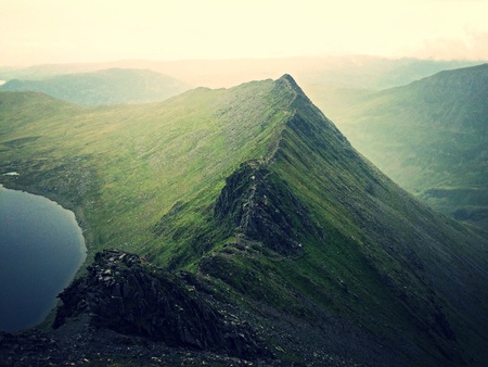 The view of Scales Tarn from Sharp Edge, Blencathra, English Lake District