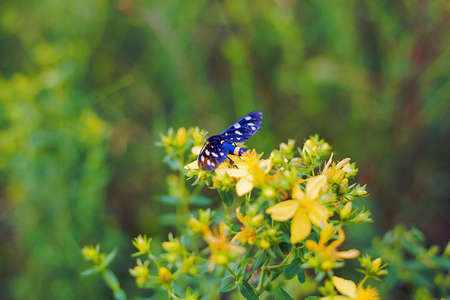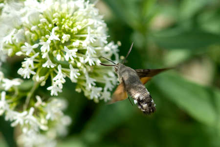 Brazhnik butterfly or hummingbird butterfly on a flower collects nectar