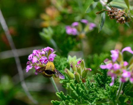 A small insect is gracefully hovering above lush lavender flowers in a garden basking in the warm sunshine.