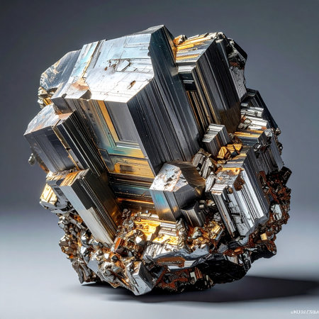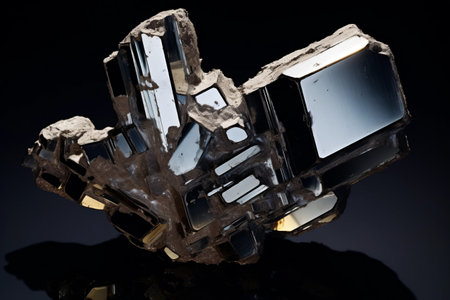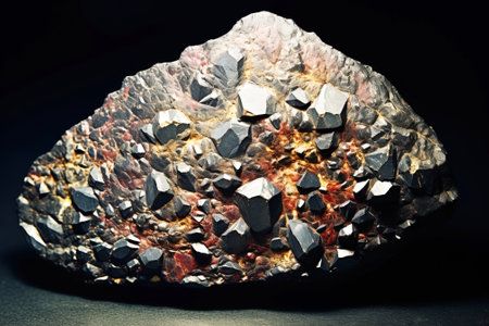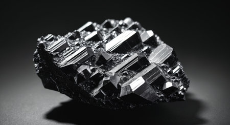 AI Generated. Sleek Hematite Crystals Displayed on Dark Background