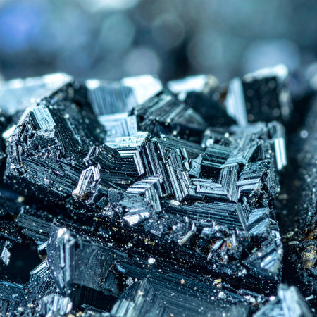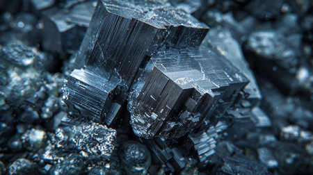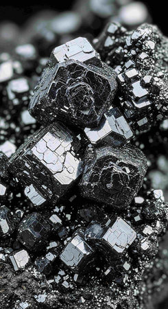 This visually striking image captures dark mineral crystals showcasing intricate patterns and rich textures, perfect for geological or abstract themes.