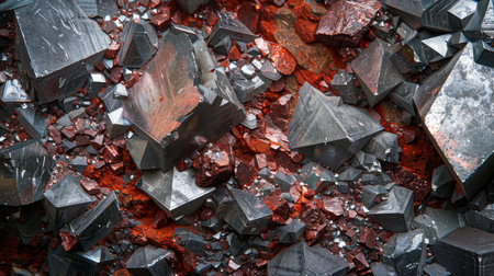Striking Mineral Formation Featuring Sharp Edged Crystals and Earthy Red Tones Captured in an Indoor Setting Under Natural Light. Generative AI