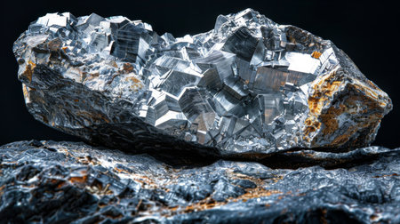 Unique Mineral Cluster Showcasing Metallic Luster and Crystal Formations on a Dark Background in an Artistic Display of Natures Beauty. Generative AI