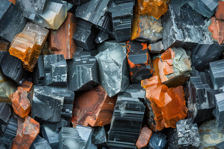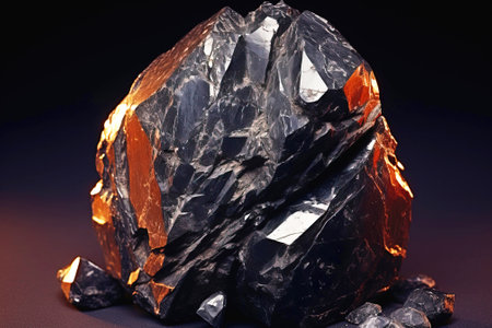 Stunning Close Up View of Black Mineral Crystals With Shimmering Orange Accents in Natural Formations Captured in High Detail. Generative AI