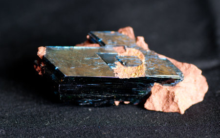 Close up View of Stunning Blue Black Mineral Crystals Reflecting Light in a Natural Environment While Showcasing Intricate Patterns. Generative AI