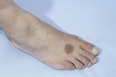 Senior woman arm with a bruise hematoma or haematome on skin, medicine and healthcare