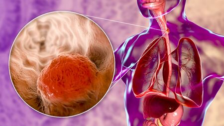 Esophageal cancer, 3D illustration showing malignant tumor in the human esophagus
