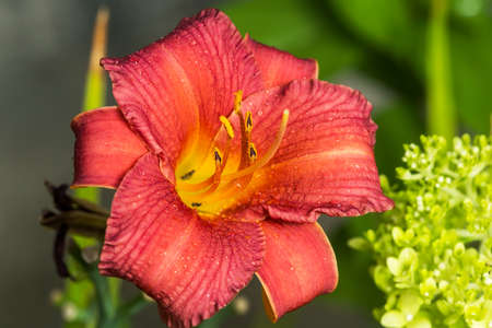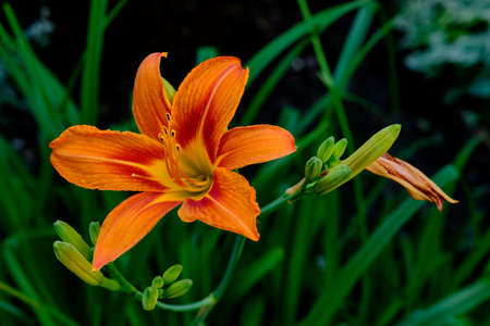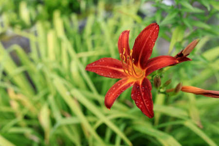 Orange daylily (Lilium) blooming in the garden