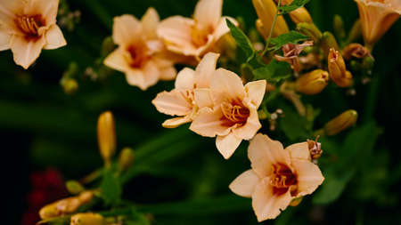 Beautiful floral nature background with day lilies blooming