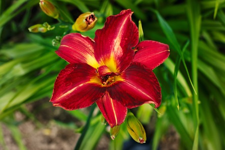 Bright flower daylily on a natural green background