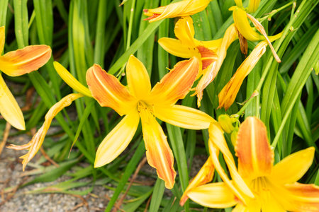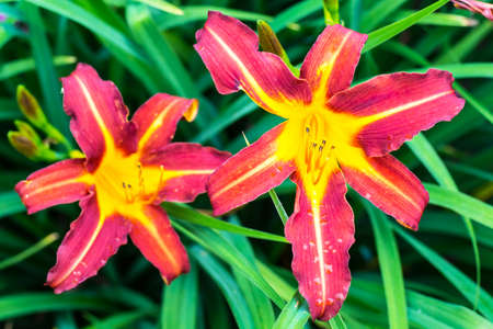 Beautiful daylilies growing in the garden
