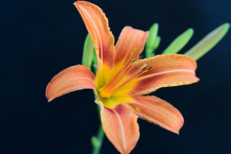 Orange lily on a black background. Close-up. Macro