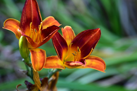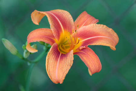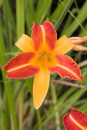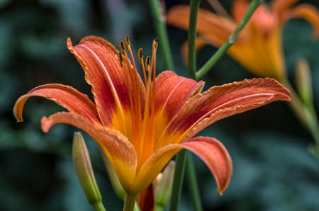 Orange and yellow flower of Hemerocallis or Daylily in a garden.