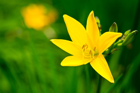 yellow lily flower on blurred background