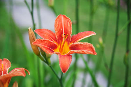 Orange lily blooming in the garden in summer