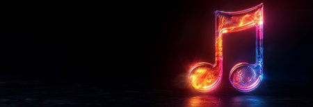 Vibrant neon music note on colorful surface showcasing energetic evening atmosphere. concept of lively music, neon art aesthetic, colorful visual experience.