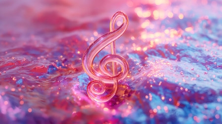 Volumetric musical treble clef in neon colors