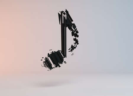 3d rendering of a musical note made out of small pieces.