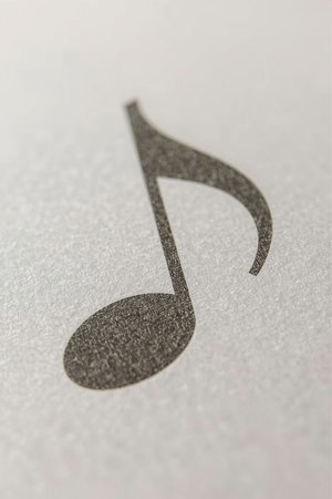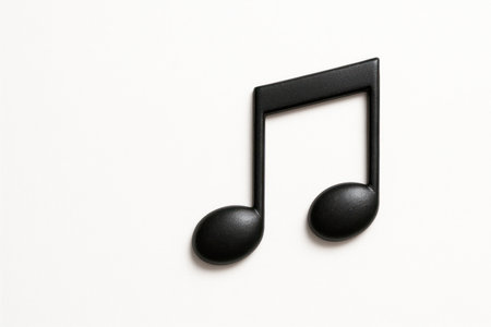 A black musical note on a white background close-up. Space for text
