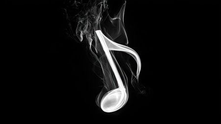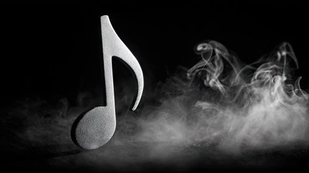 A stylized musical note is depicted, formed from wisps of smoke against a dark background. The image showcases grayscale tones, contrasting light and shadow to define the note's shape. This composition may be suited for creative projects, musical themes, or promotional materials.