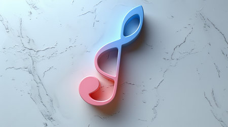 A stylized musical note is depicted with a gradient of blue and magenta hues. The object appears three-dimensional with soft shadows against a white background. This image could be suitable for various creative projects including music-related websites, educational resources, or marketing materials.