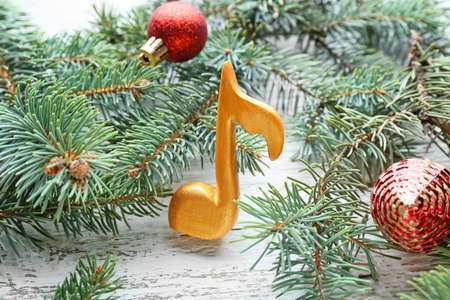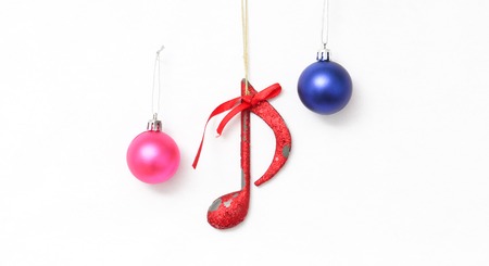 picture of a Christmas decoration with musical notes on white background.
