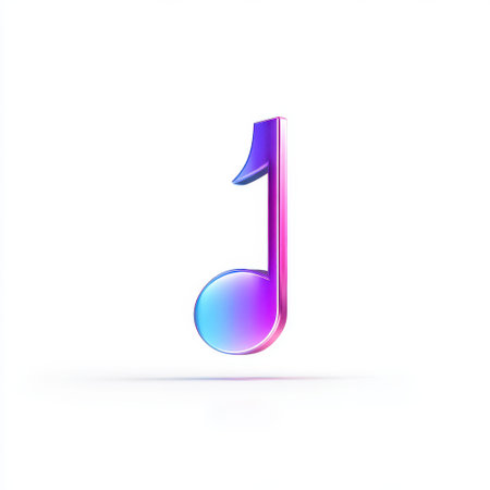 Vibrant Glossy Music Note Icon in Modern Colors with Gradient Effect on Minimalist Background Ideal for Digital and Creative Projects